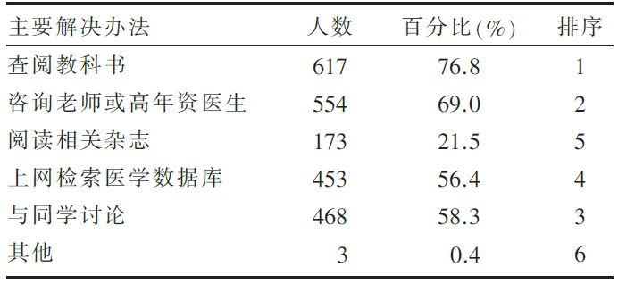 ![]() | 表3 在临床实践中遇到问题的主要解决办法 |