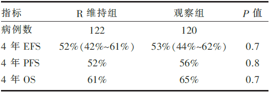 MR治疗在复发难治DLBCL挽救及ASCT后的应用中未明显改善EFS、PFS及OS,并具有较高不良反应发生率。该临床试验不建议对复发难治DLBCL患者在挽救及ASCT治疗后行MR。