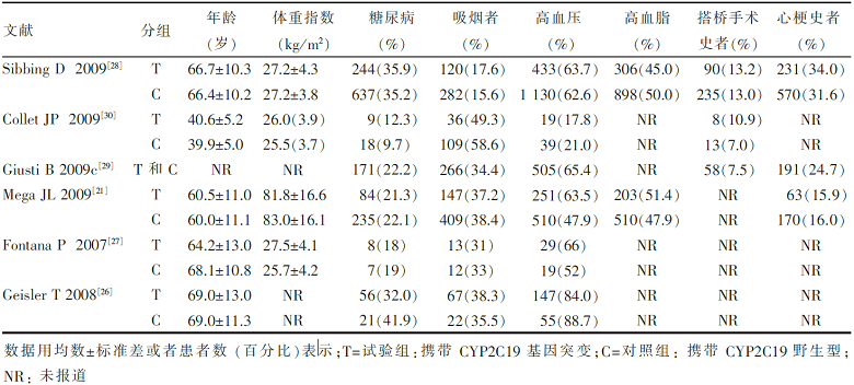 纳入标准:①氯吡格雷效应与CYP2C19基因多态性之间的分析;②研究对象以氯吡格雷作为抗血小板治疗方案的病人,分析了CYP2C19基因多态性。