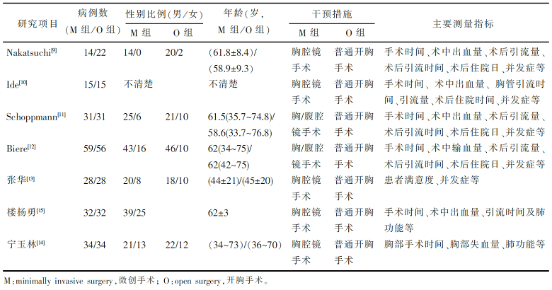 微创手术(包括胸腔镜手术和胸腹腔镜联合手术) vs. 普通开胸手术。
