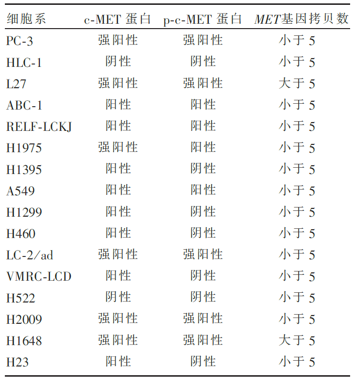 | 表2 c-MET蛋白和p-c-MET蛋白表达水平及 MET基因拷贝数 |