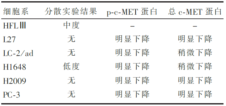 | 表1 各细胞系的HGFmRNA和蛋白表达情况 |
