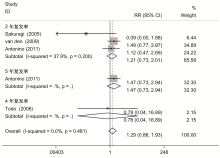 NSRH减少宫颈癌患者术后性功能并发症的假设也逐渐被研究证实。Pieterse等[25]测定不同术式患者术后性唤起时阴道血流增加的脉冲振幅, 以此评价患者性唤起差异, 研究发现接受NSRH 的患者比接受传统RH的患者在性唤起时有更好的血流状况。而居杏珠等[19]研究发现NSRH患者的性生活质量明显好于RH患者; Ceccaroni等[23]发现NSRH组患者较RH组患者术后严重性功能障碍的发生率明显降低, 提示NSRH对患者术后性功能恢复的重要的意义。然而, 目前还没有成为术后性功能评估的公认指标, 所以本系统评价并未进行合并分析。同时也有文献比较了患者术后性功能及生活质量的改变, 均提示NSRH术式明显优于RH术式, 然而由于现有研究对该指标评价标准不一, 该结论尚需更多的临床研究加以证实。