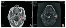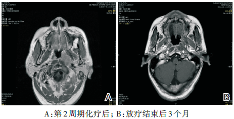 患者, 男性, 45岁, 因“ 左耳鸣6个月, 涕血2周” 收住我科。患者因“ 耳鸣” 于我院耳鼻喉科门诊就诊, 纤维鼻咽镜检查发现鼻咽肿物, 活检病理提示鼻咽非角化型未分化型癌, 为进一步治疗入院。患者发病以来无头晕头痛、面麻、视物重影、视力下降、咳嗽、咯血等不适, 无发热, 精神胃纳可, 二便正常, 近半年体重无明显减轻。