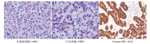 颜黎栩(病理科医师):从病理学图像看, 患者的肿瘤内有两种细胞形态的腺癌, 图2A为典型的腺癌, 细胞核较正常肺泡上皮大, 核深染, 偏位, 胞浆粉染。图2B(取自转移淋巴结)胞浆黏液蓝染, 将细胞核挤向一侧, 成印戒样改变, 为少见的肺癌组织学亚型。