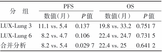 | 表1 阿法替尼对脑转移患者PFS、OS 的影响 |