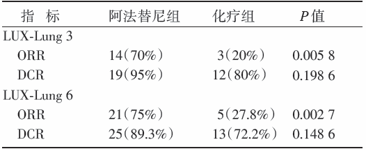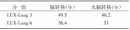 | 表3 阿法替尼对脑转移人群ORR 及DCR 的影响 |