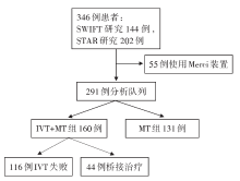 • 干预措施:发病4.5小时内符合IVT适应证的患者在MT前给予IVT, 患者筛选流程见图1。