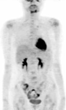 廖宁:该患者的PET结果显示除肝脏新发病灶以外, 全身其它病灶均明显缩小, 代谢减弱。如果按照RECIST标准来衡量, 出现新病灶均应评价为疾病进展。然而, 在全身大部分病灶均明显缩小的情况下, 更换二线化疗方案是否可行?有无其它手段进行评价?