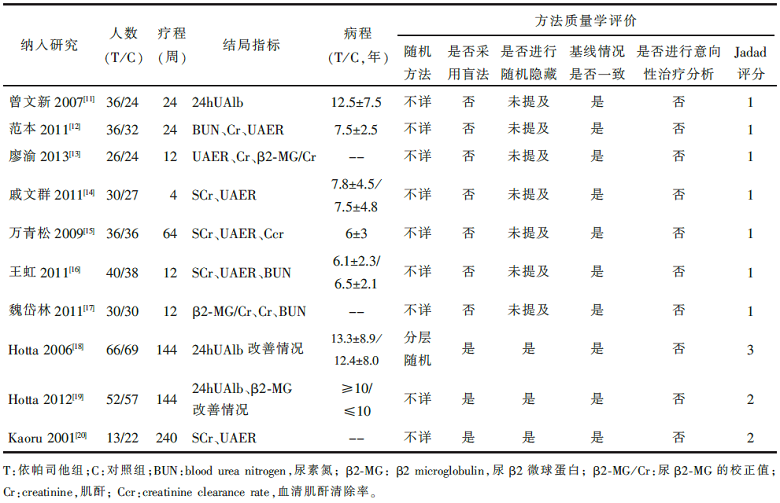 本次研究旨在了解依帕司他治疗DN是否优于对照组,以期为今后临床治疗DN提供循证医学依据。