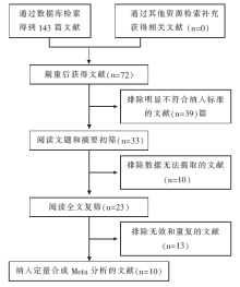 初检出相关文献143篇,按照纳入和排除标准逐层筛查后,最终纳入10个RCT,共724例患者。其中中文7篇[ 11, 12, 13, 14, 15, 16, 17],英文3篇[ 18, 19, 20]。文献筛选流程及结果见 图1。