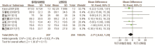 采用RevMan 5.1软件进行统计分析,本文计量资料采用均数差(mean difference,MD)或标准化均数差(standardized mean difference, SMD)及其95%可信区间(confidence interval,CI)为疗效分析统计量。各纳入研究结果间的异质性检验采用 2检验。当各研究间有统计学同质性时( P>0.1, I2<50%),采用固定效应模型进行 Meta分析。如各研究间存在统计学异质性( P<0.1, I2>50%),分析其异质性来源,对可能导致异质性的因素进行亚组分析,若研究间存在统计学异质性而无临床异质性或差异无统计学意义时,可采用随机效应模型进行分析;如两组间异质性过大或无法找寻数据来源时,采用描述性分析。