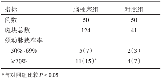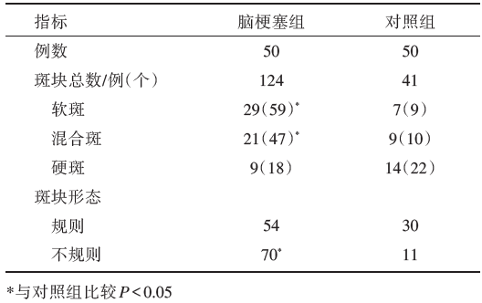 | 表1 两组颈动脉斑块检出情况 |