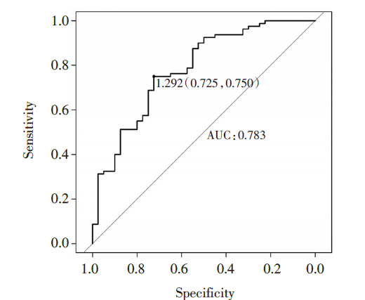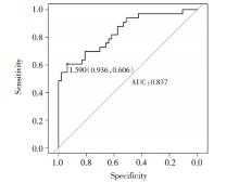 | 图1 血清LncRNA-HOTAIR水平诊断急性胰腺炎的ROC分析Fig.1 ROC analysis of serum LncRNA-HOTAIR level in the diagnosis of acute pancreatitis |