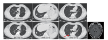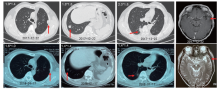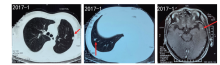 杨衿记:患者截止2017年12月, 颅内病灶仍为单发, 无症状脑转移, 较前仅增大1 mm, 可认为无明显变化。建议观察, 而右下肺行肺穿刺。