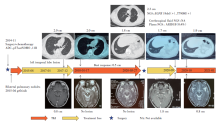 患者于2014年11月体检发现左上肺两个结节, 长径分别约2.5 cm及1.5 cm, 考虑肺恶性肿瘤, 未见纵隔淋巴结肿大及远处转移征象。2014-11-24于外院行左上肺切除术+纵隔淋巴结清扫术, 术后病理及分期:左上肺腺癌, pT3satN0M0, Ⅱ B期(按第八版分期), EGFR 19del(+)。术后行培美曲塞+卡铂辅助化疗4周期, 化疗后复查CT示双肺多发小结节影, 考虑转移。2015年4月开始口服吉非替尼。